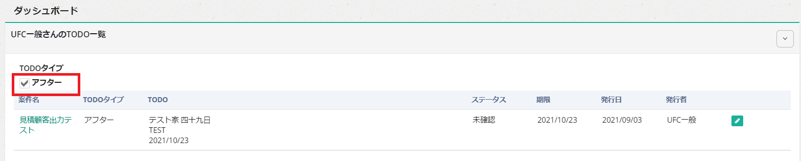 2)チェックを入れると、アフター画面のアプローチ予定対応登録モーダルで登録したTODOが表示されます。