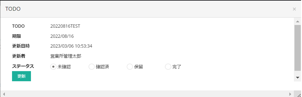3)自分がログインしている営業所以外のTODOは、表示はされるがリンクはしません。