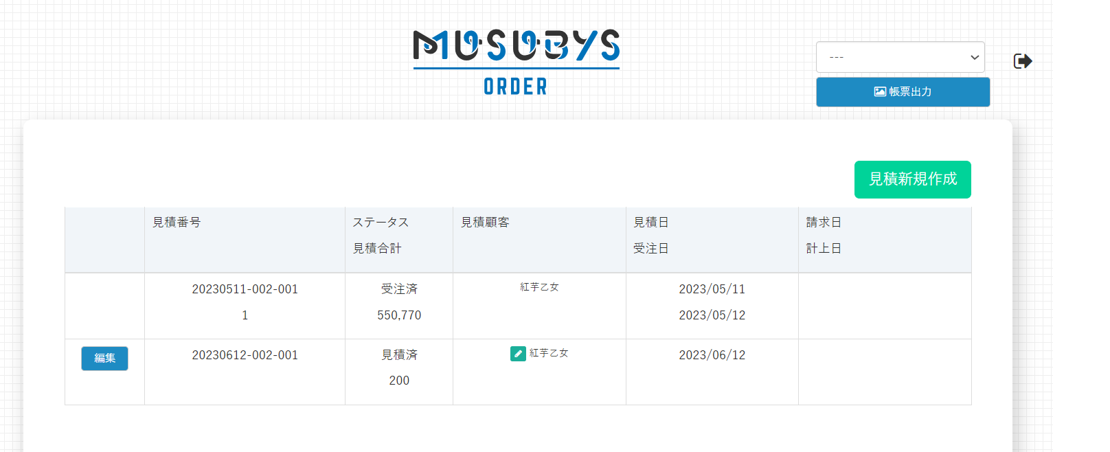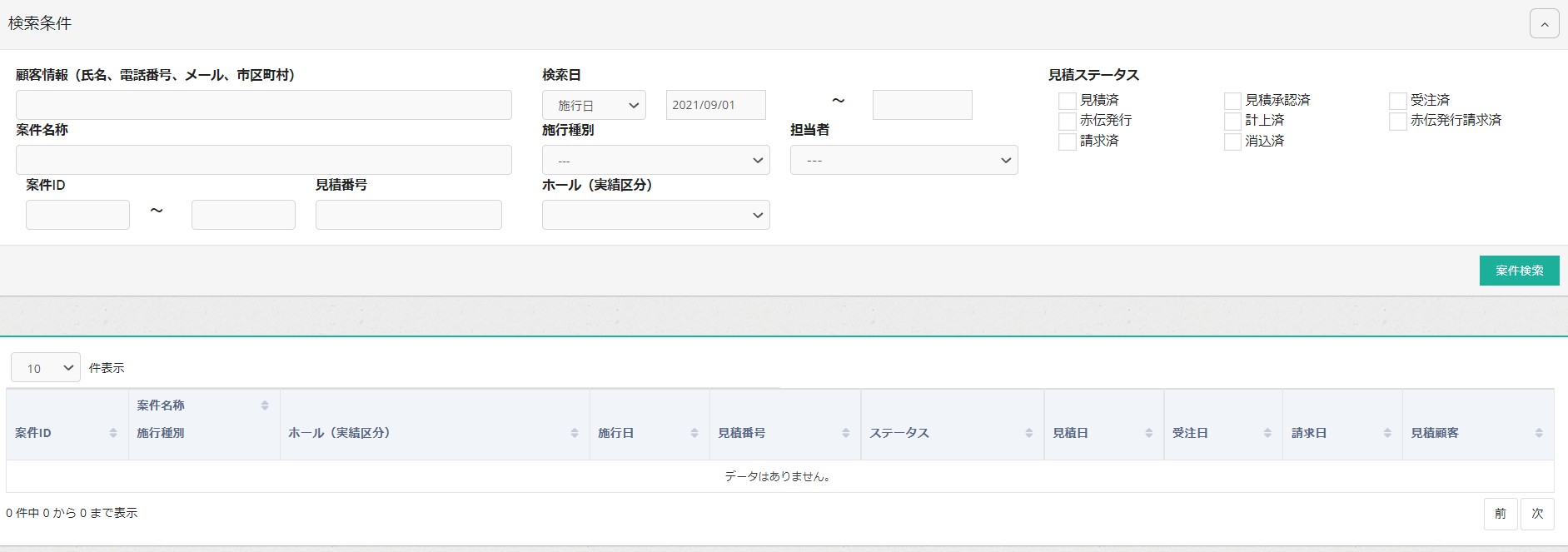 見積顧客もしくは請求顧客で検索したい場合には見積検索画面をご利用ください。